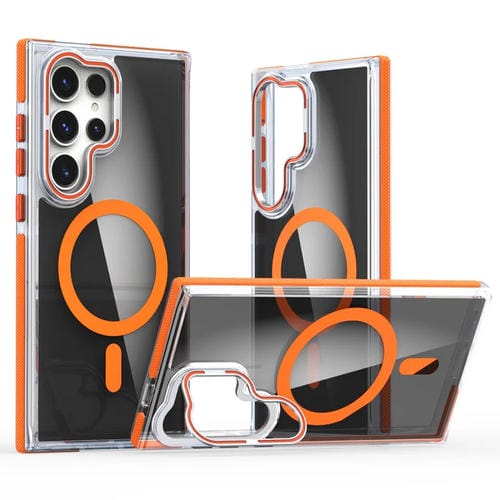Estuche para teléfono Samsung Galaxy S24 Ultra 5G con soporte para lente Magsafe (Negro Transparente Naranja)