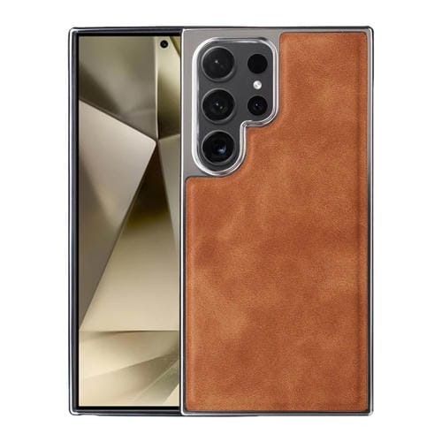 Estuche para Teléfono Samsung Galaxy S24 Ultra 5G Magsafe TPU Híbrido Pu Lateral Galvanizado (Marrón)