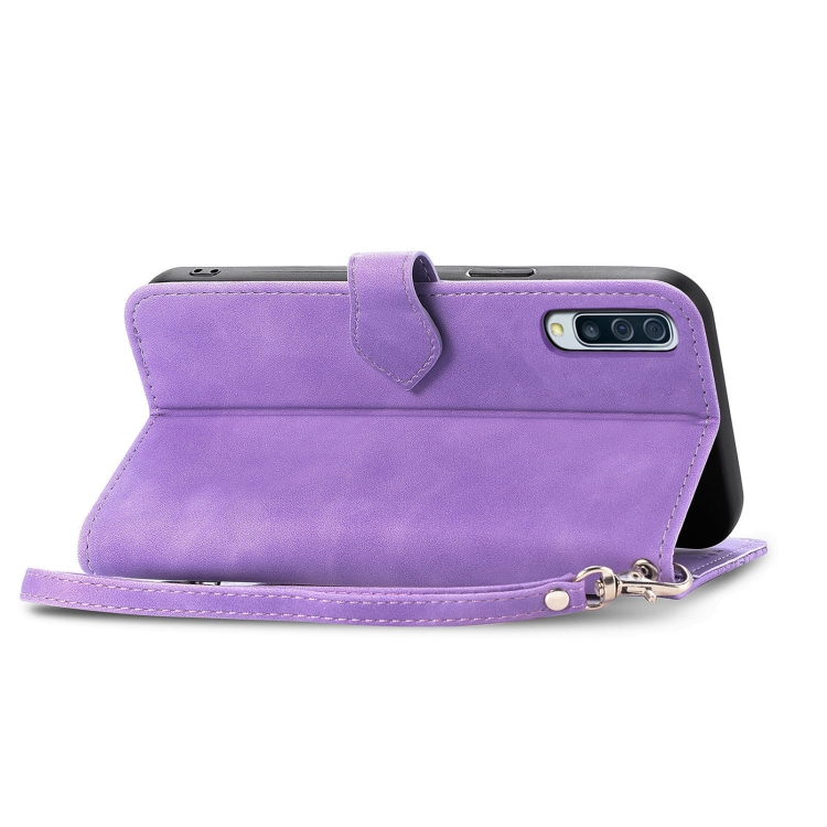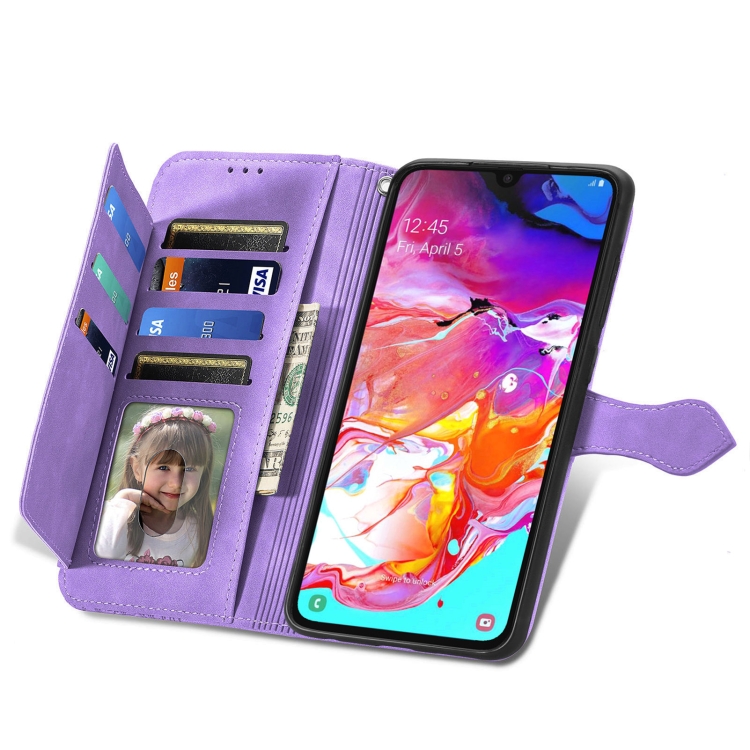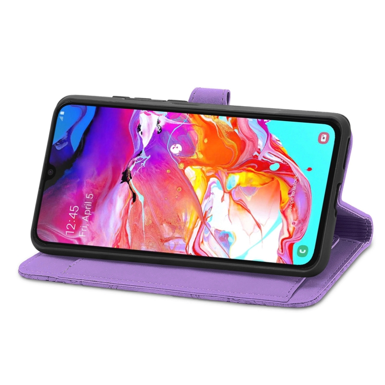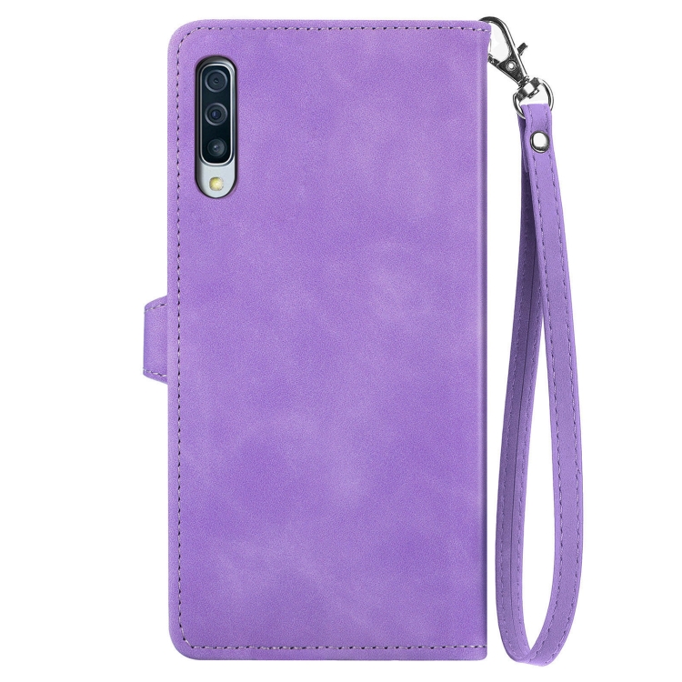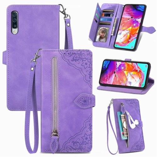 Funda de Cuero Samsung Galaxy S24 Ultra 5G con Cremallera y Flores en Relieve (Púrpura)