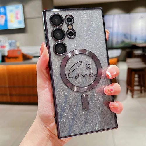 Estuche para Teléfono Samsung Galaxy S24 Ultra 5G Magsafe Dual-Love Leaves TPU con Brillo Degradado (Negro)