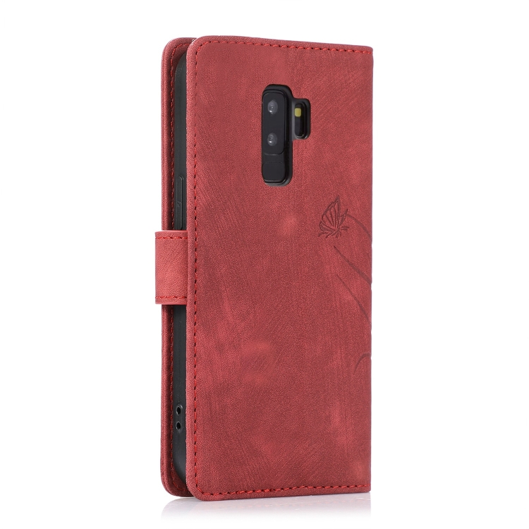 Funda de Cuero para Samsung Galaxy S9 con Relieve Mariposa Orquídea (Rojo)