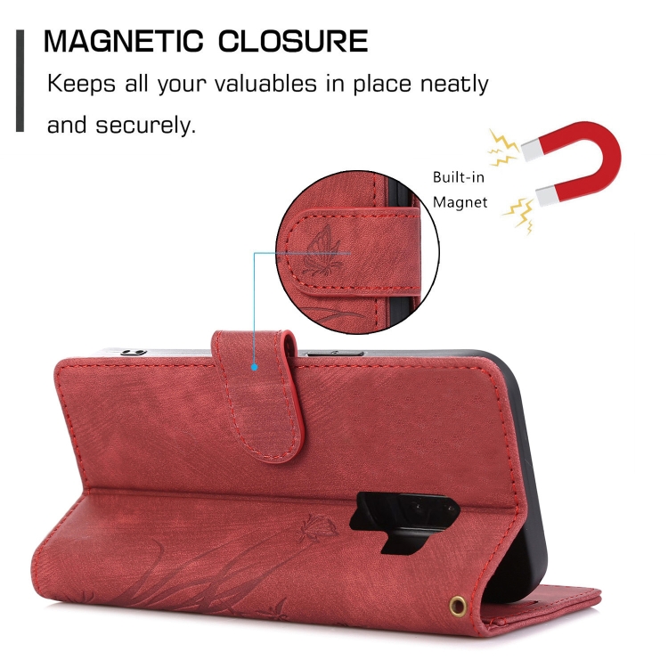 Funda para Teléfono Samsung Galaxy S9 Cuero con Relieve Mariposa Orquídea (Rojo)
