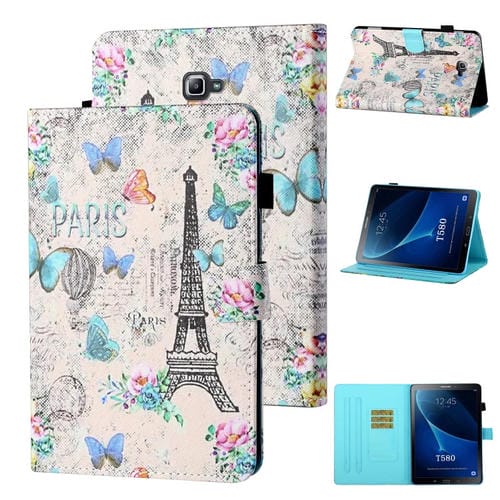 Estuche para Samsung Galaxy Tab A 10.1 (2016) T580 / T585 Cuero Abatible Horizontal con Soporte y Ranura para Tarjeta (Torre y Mariposas)