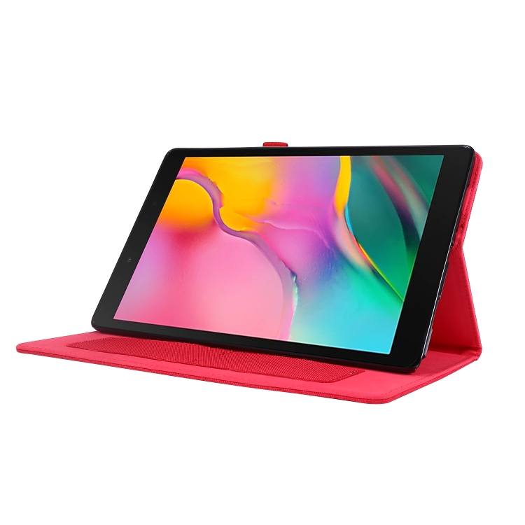 Funda Protectora Samsung Galaxy Tab A7 (2020) Cuero PU Tapa Horizontal TPU Tela Ranuras Tarjetas Soporte (Rojo)