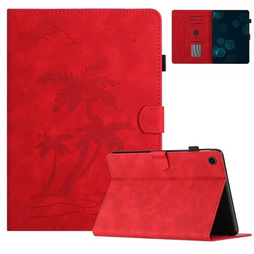 Funda para Tablet Samsung Galaxy Tab A8 10.5 (2021) X200 / X205 Cuero Inteligente Relieve Árbol de Coco (Rojo)