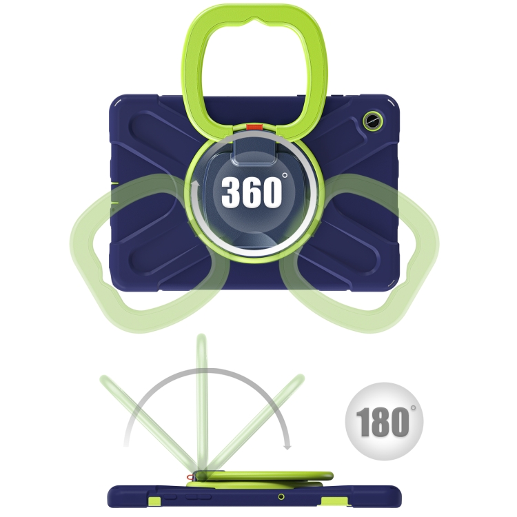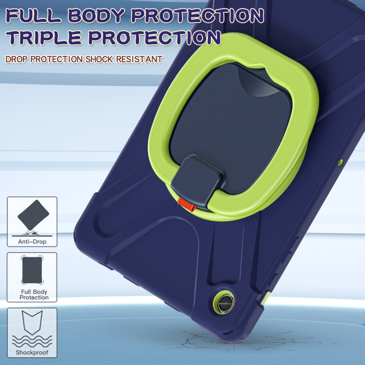 Funda híbrida de silicona para Samsung Galaxy Tab A9 con soporte y correa para el hombro (Azul Marino + Lima)
