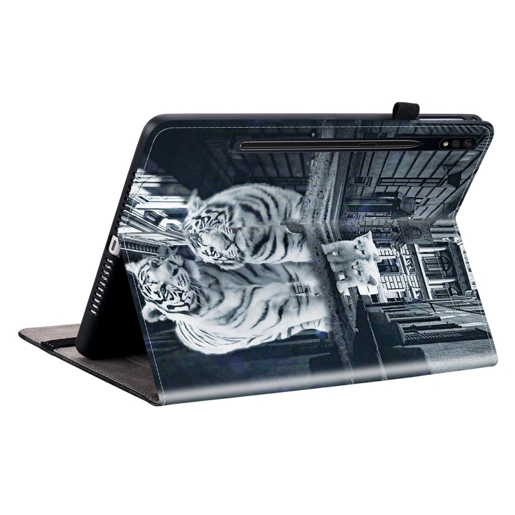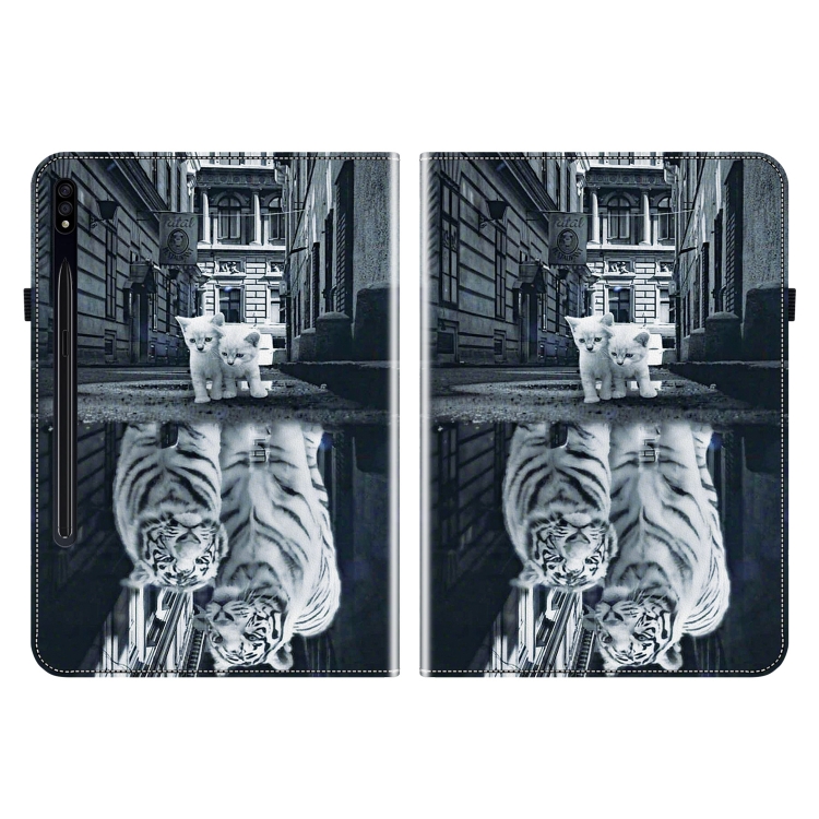 Funda para Tablet Samsung Galaxy Tab S7 Fe/S8+/S7+ Cuero Pintado Textura de Cristal (Tigre Reflejo de Gato)