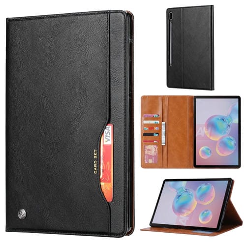Funda de Cuero Samsung Galaxy Tab S7 Plus T970 T975 T976 con Tapa Horizontal Marco Fotos Soporte Ranuras Tarjetas Billetera (Negro)