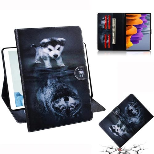 Funda para Samsung Galaxy Tab S7 T870 (2020) Cuero Tapa Horizontal Dibujo 3D Soporte Ranura Tarjeta Billetera (Lobo y Perro)