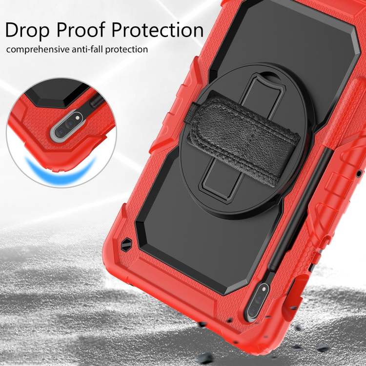 Funda para Tablet Samsung Galaxy Tab S8 SM-X700 Silicone + PC con Correa de Hombro (Rojo + Negro)