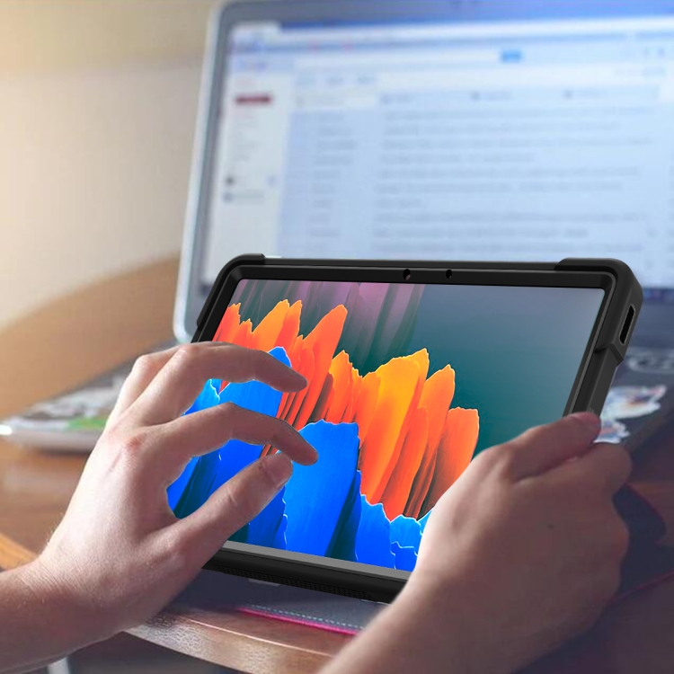 Funda Protectora para Tablet Samsung Galaxy Tab S8 y Tab S7 Silicone + PC a Prueba de Golpes con Soporte (Negro)