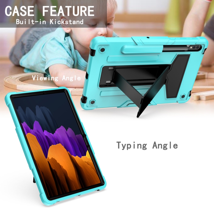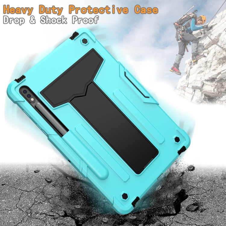 Soporte en Forma de T para Samsung Galaxy Tab S8 y Tab S7 T870 / T875 con Funda de Silicona (Menta Verde + Negro)