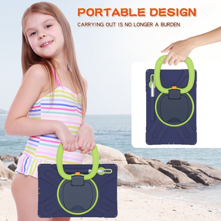 Funda Protectora para Tablet Samsung Galaxy Tab S8 Plus / Tab S8 + / Tab S7 FE / Tab S7 Plus T970 T975 Silicona PC Soporte Correa (Navyblue Lime)