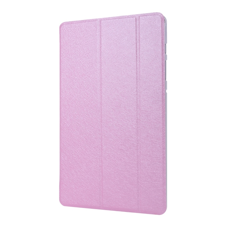 Funda para Tablet Samsung Galaxy Tab S8 Plus / Tab S8 + / Tab S7 FE / Tab S7 Plus / T970 Textura de Seda Tres Plegas Horizontal Flip con Soporte y Ranura de Bolígrafo (Rosa)