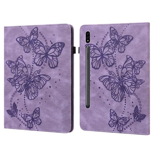 Funda para Tablet Samsung Galaxy Tab S9 Cuero Patrón Mariposa En Relieve (Púrpura)