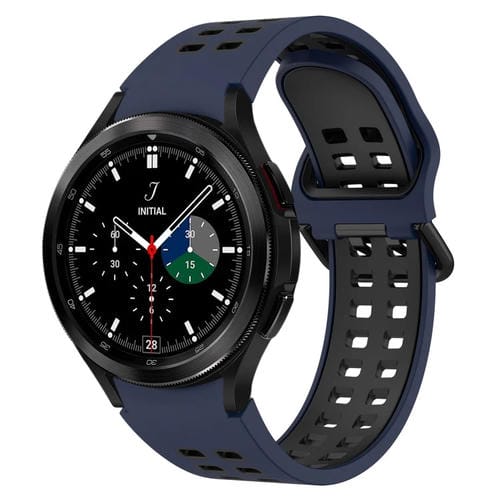 Banda de Reloj para Samsung Galaxy Watch 4 Classic 46mm Silicona Transpirable Dos Colores (Azul Medianoche + Negro)