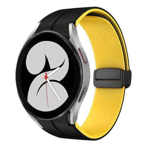 Correa de Silicona para Samsung Galaxy Watch 4 40mm con Hebilla Plegable Magnética (Negro + Amarillo)