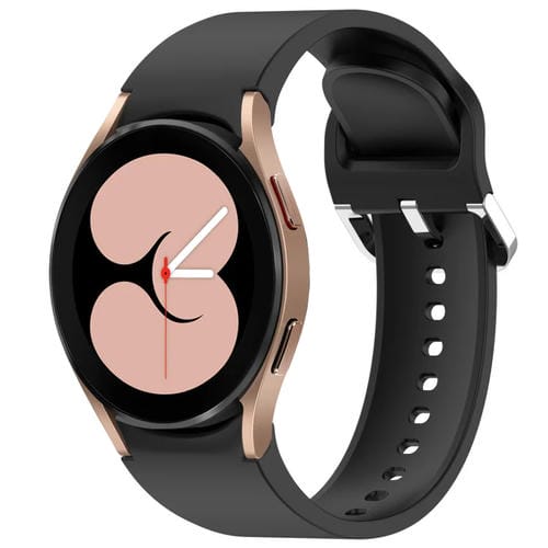 Correa de Silicona para Samsung Galaxy Watch 4 40mm con Hebilla Plateada (Negro)