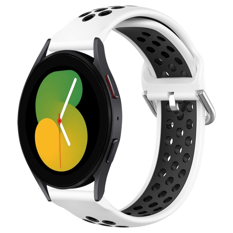 Banda de Reloj de Silicona Deportiva para Samsung Galaxy Watch 5 44mm 20mm (Blanco + Negro)