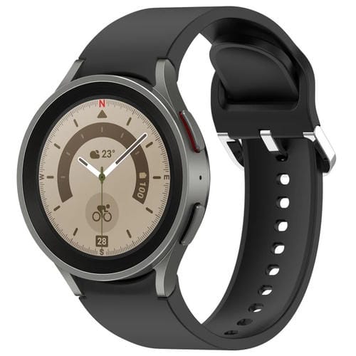 Correa de Silicona para Samsung Galaxy Watch 5 Pro 45mm con Liberación Rápida y Hebilla Plateada (Negro)