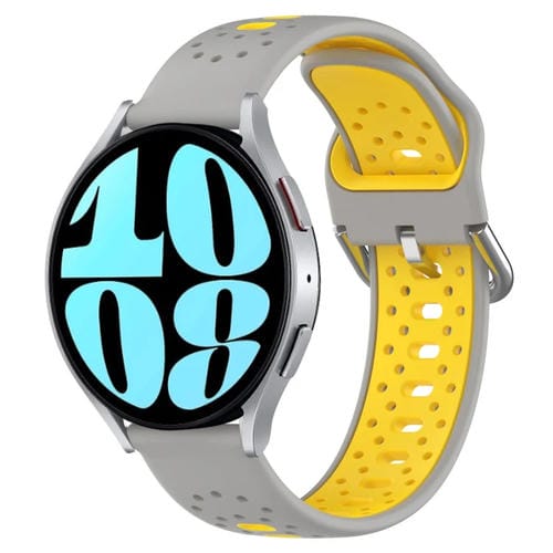 Banda de Reloj silicona para Samsung Galaxy Watch 6 44mm 20mm dos colores transpirable (Gris + Amarillo)