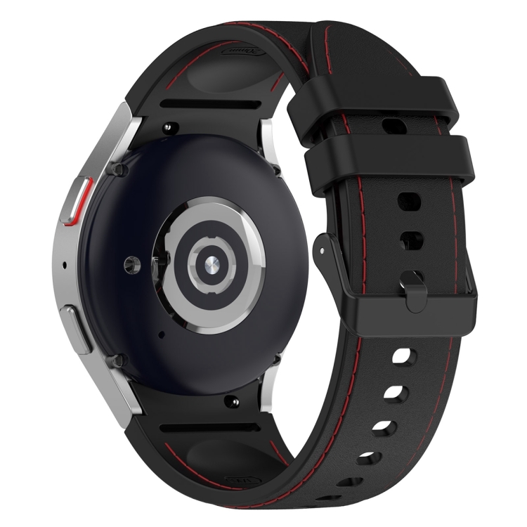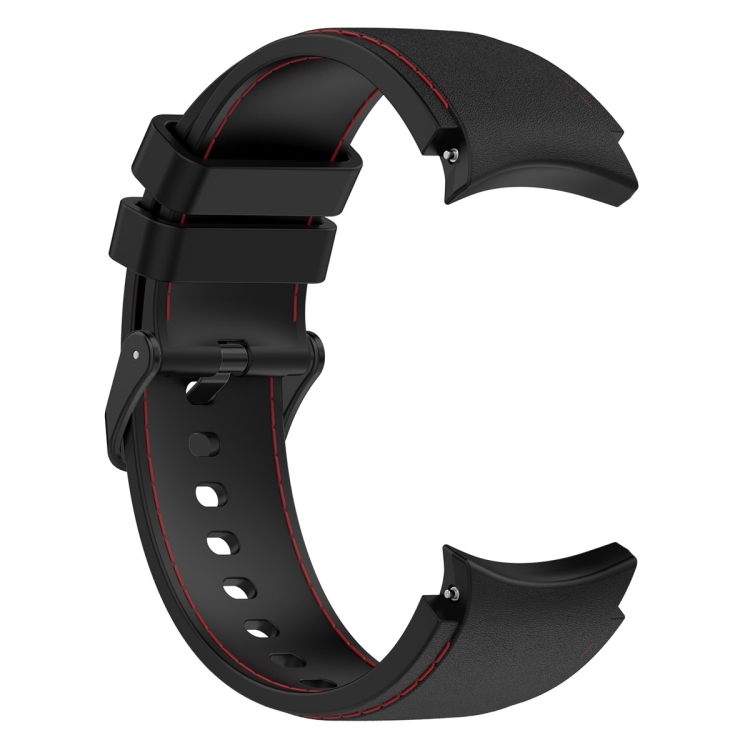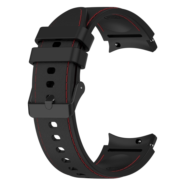 Banda de Reloj para Samsung Galaxy Watch 6 Silicona con Hebilla Cuero Clásico Tamaño S (Negro + Rojo)