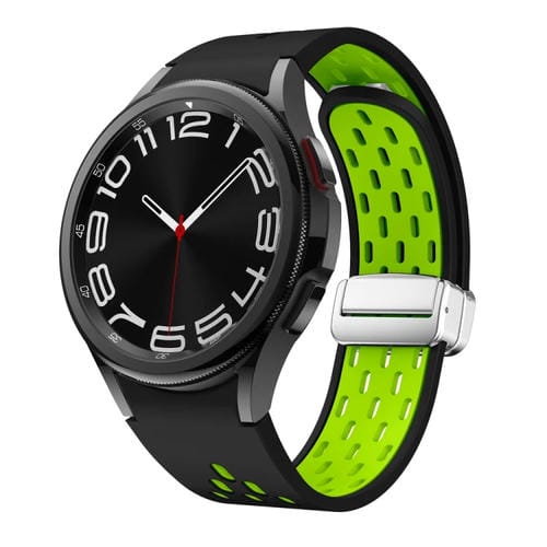 Correa de Reloj Clásica para Samsung Galaxy Watch 6/6 con Hebilla Plateada Plegable Magnética (Negro Verde)