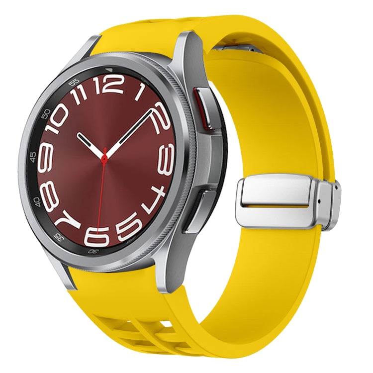 Correa de Reloj silicona para Samsung Galaxy Watch 6 Classic 43/47mm con hebilla plateada magnética (Amarillo)