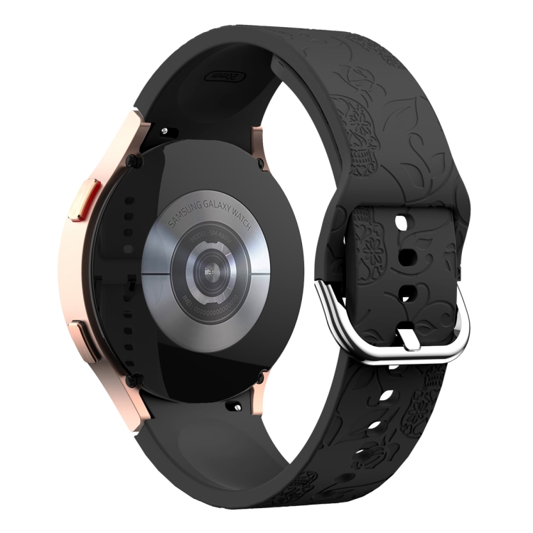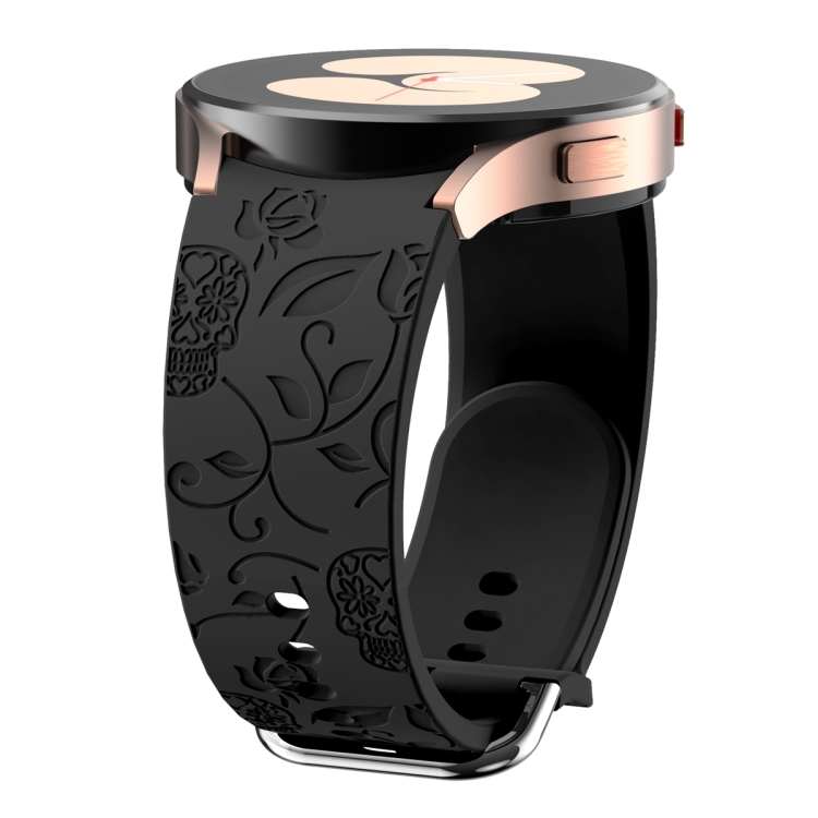 Correa de Silicona para Samsung Galaxy Watch 6 con Relieve de Flor y Calavera (Negro)