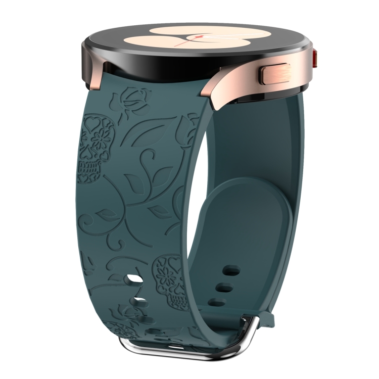 Correa de Silicona para Samsung Galaxy Watch 6 con Relieve de Flor y Calavera (Verde Pino)