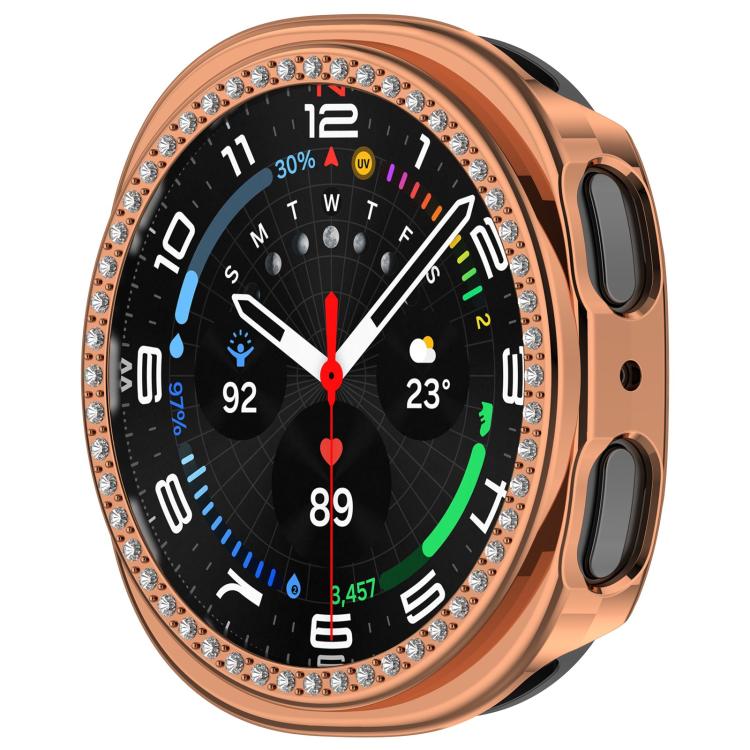 Para Samsung Galaxy Watch 8 de 40 mm, caja de PC hueca con una sola fila de diamantes y media cobertura (oro rosa galvanizado)