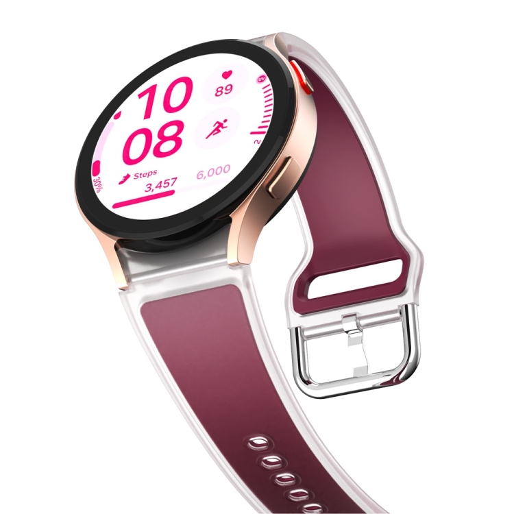 Correa de Silicona para Samsung Galaxy Watch FE 40mm Glacier Clear de Dos Colores (Rojo Vino)