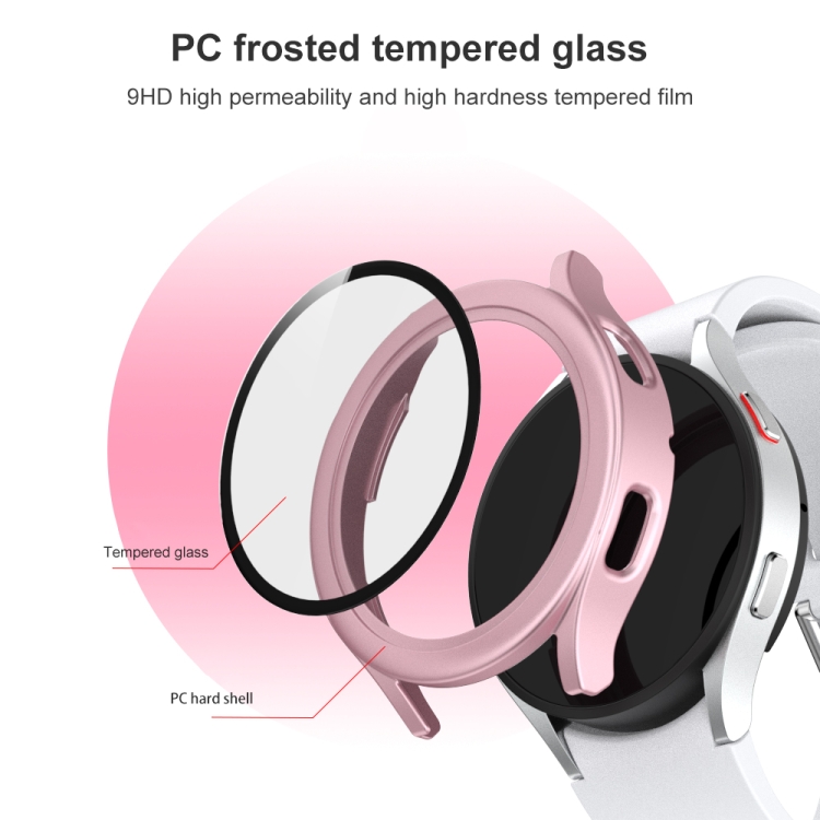 Funda Protectora para Samsung Galaxy Watch4 44 Mm Frosted Pc con Película de Vidrio Templado (Oro Rosa)