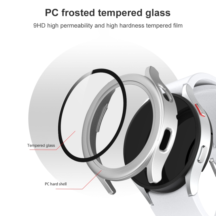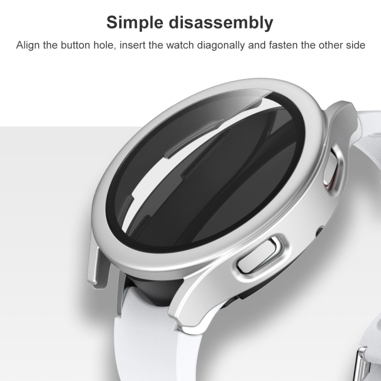 Funda Protectora para Samsung Galaxy Watch4 44 mm con Película de Vidrio Templado Integrada (Plata)
