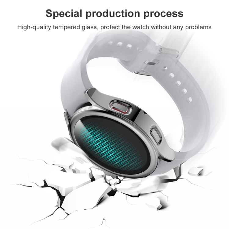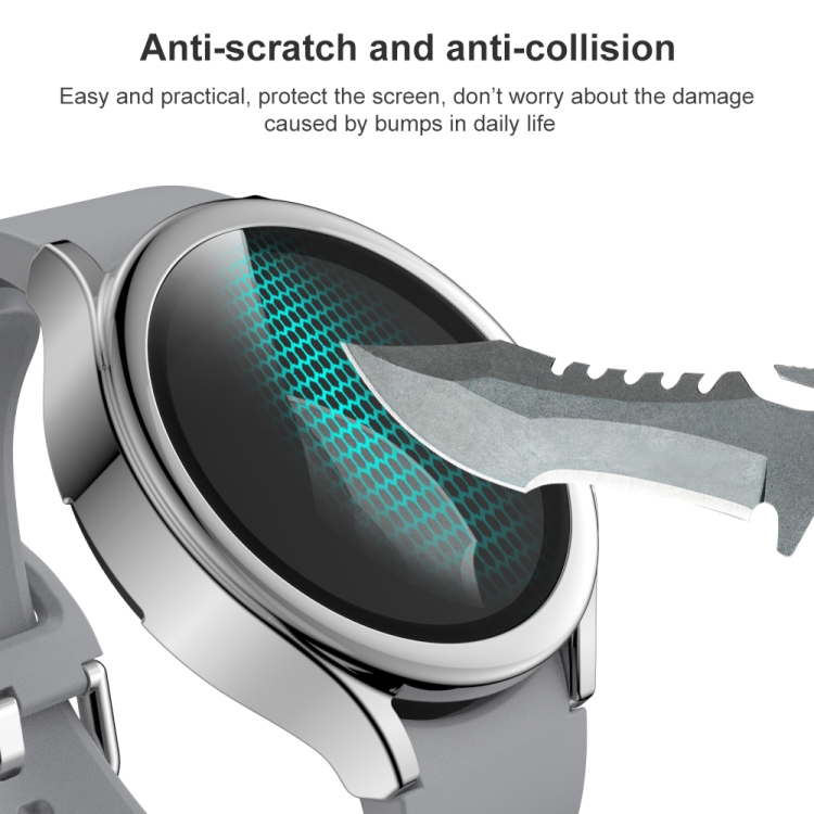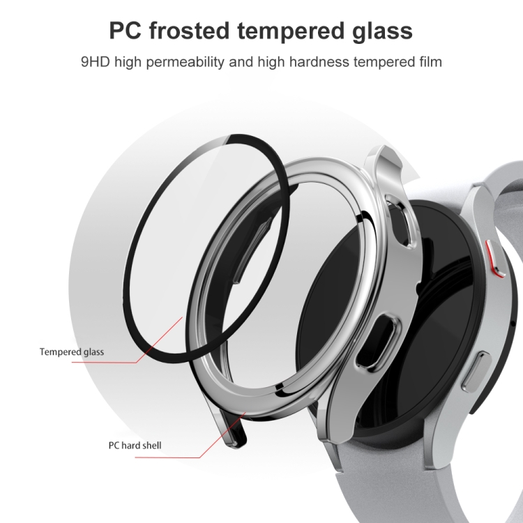 Funda Protectora para Samsung Galaxy Watch4 40 mm con Película de Vidrio Electroplateado (Plata)