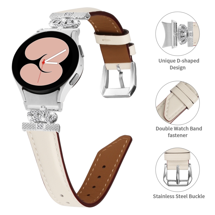 Correa de Reloj de Cuero Sarga para Samsung Galaxy Watch6/6 En Forma de D con Corona Clásica (Albaricoque Plateado)