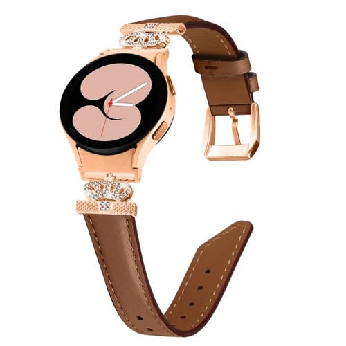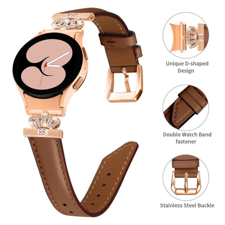 Correa de Reloj de Cuero Sarga para Samsung Galaxy Watch6/6 en Forma de D con Corona Clásica (Marrón Dorado Rosa)
