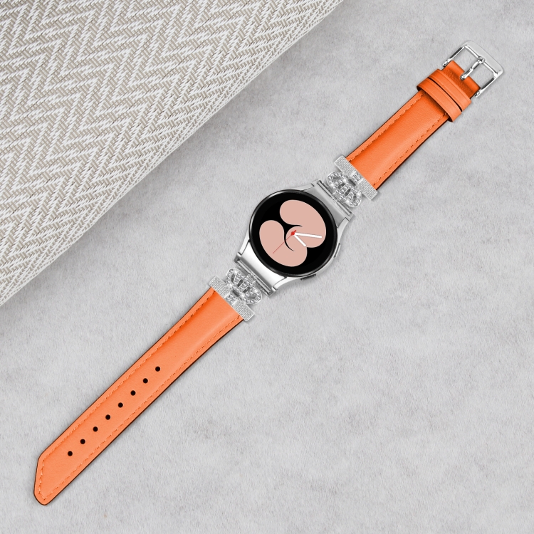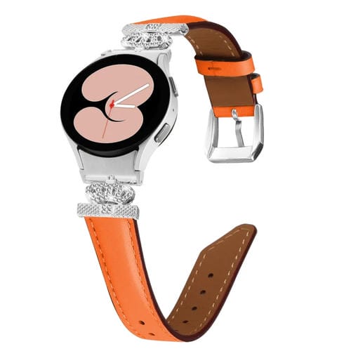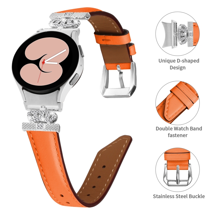 Correa de Reloj de Cuero Sarga para Samsung Galaxy Watch6/6 con Forma de D y Corona Clásica (Naranja Plateada)
