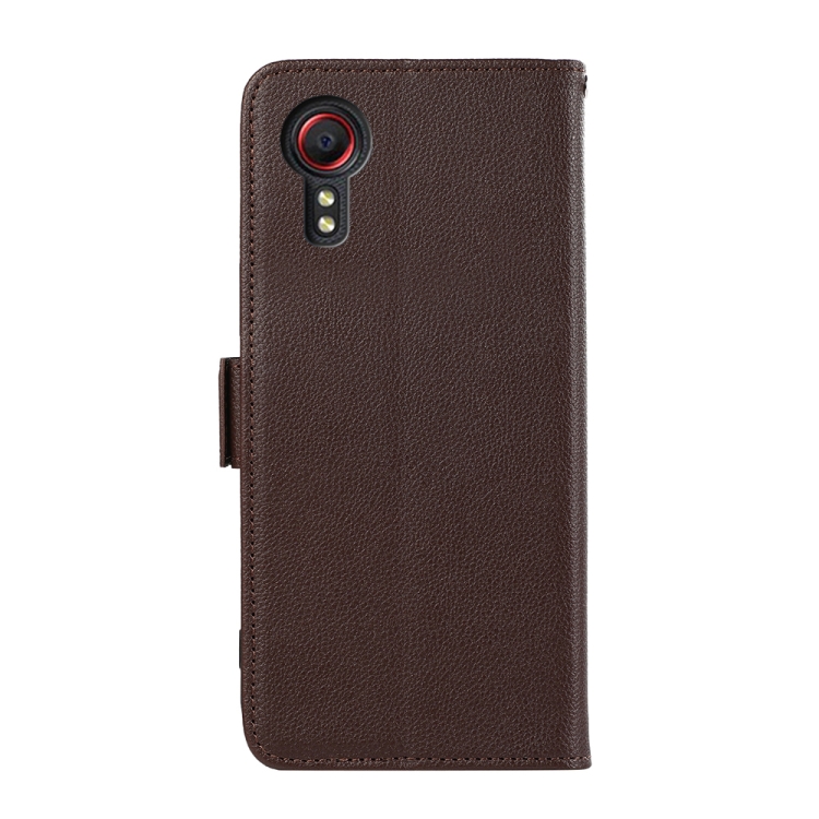 Funda para Teléfono Samsung Galaxy Xcover 5 Abeel Cuero Patrón Litchi Magnético Lateral (Marrón)