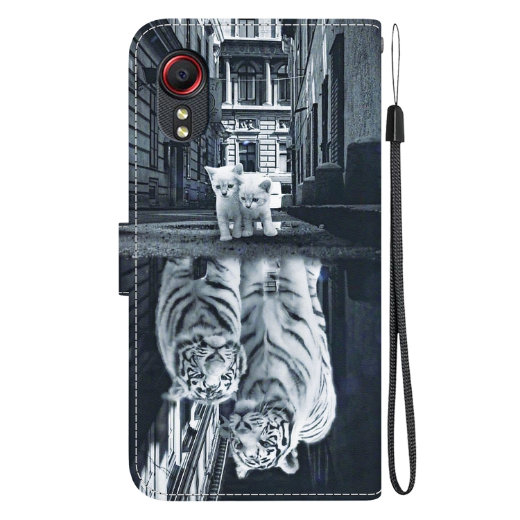 Funda para Samsung Galaxy Xcover 5 Cuero Dibujo Coloreado Textura Cristal (Reflejo de Tigre Gato)
