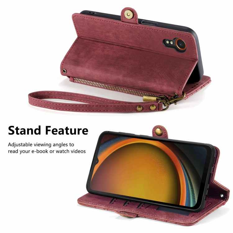 Estuche para Teléfono Samsung Galaxy Xcover 7 Cuero con Hebilla Lateral y Billetera con Cremallera (Rojo)