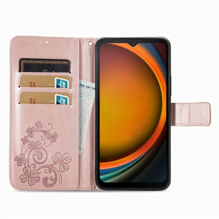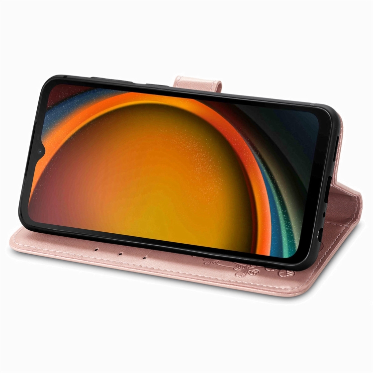 Funda para Teléfono Samsung Galaxy Xcover 7 Cuero Hebilla En Relieve Cierre de Cuatro Hojas (Oro Rosa)