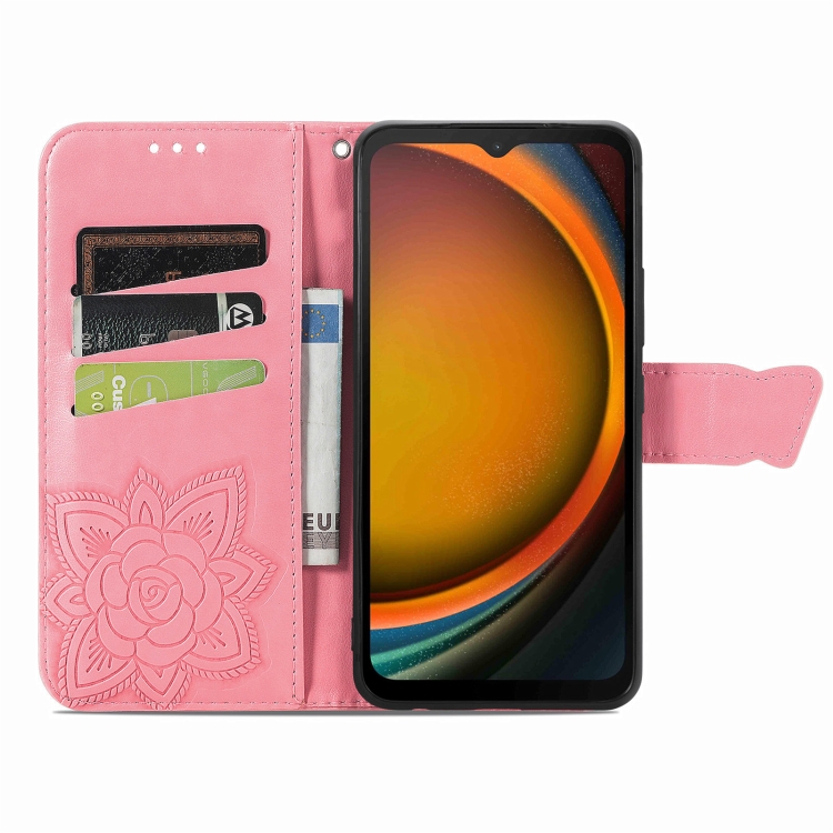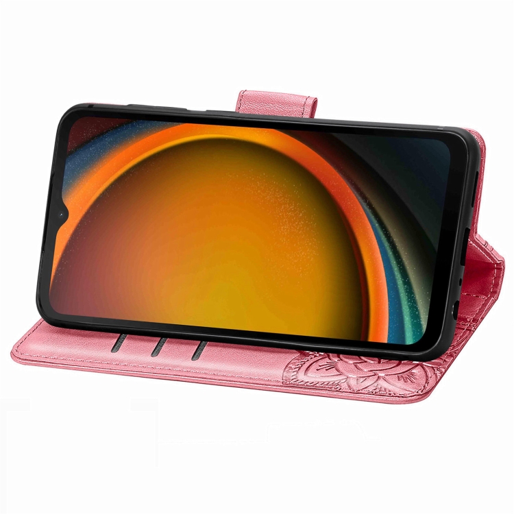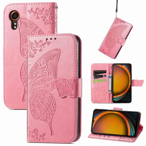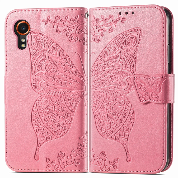 Funda para Teléfono Samsung Galaxy Xcover 7 Cuero Relieve Flor de Amor y Mariposa (Rosa)