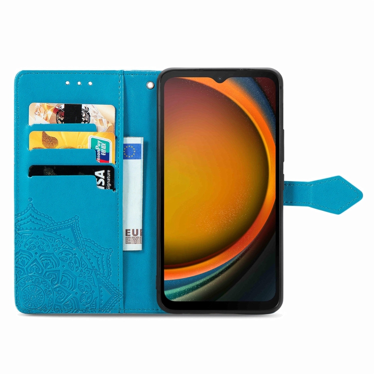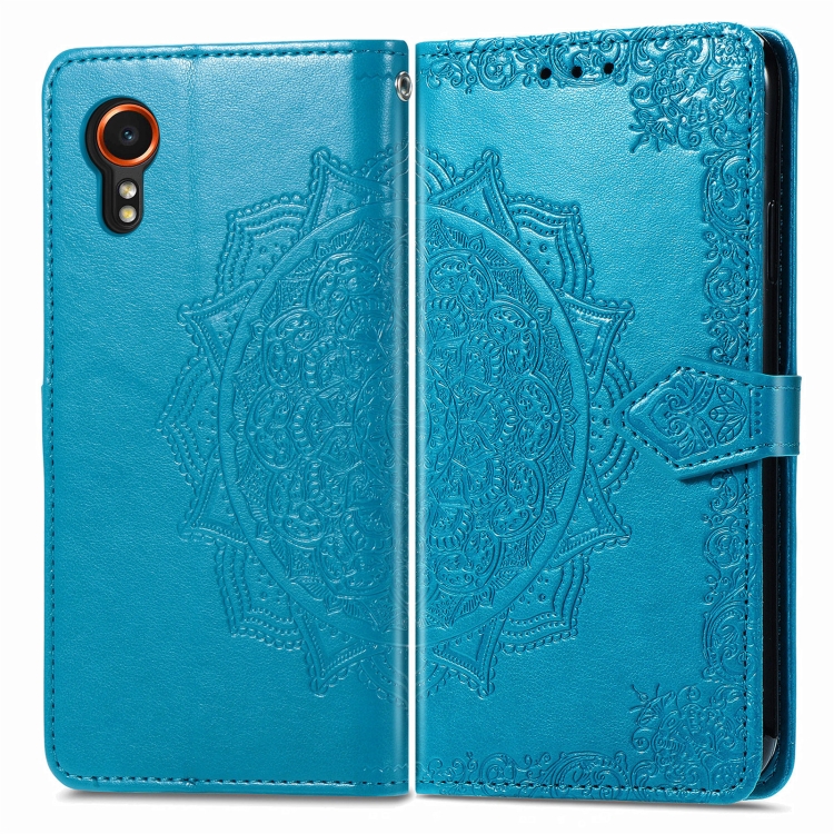 Funda para Teléfono Samsung Galaxy Xcover 7 Cuero Relieve Flores Mandala (Azul)