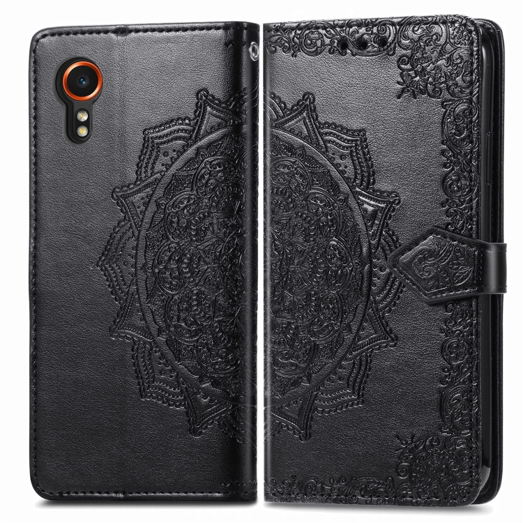 Funda para Teléfono Samsung Galaxy Xcover 7 Cuero Relieve Flores Mandala (Negro)