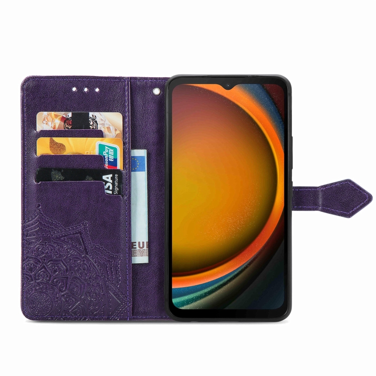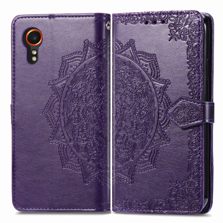 Funda para Teléfono Samsung Galaxy Xcover 7 Cuero con Relieve de Flores Mandala (Púrpura)