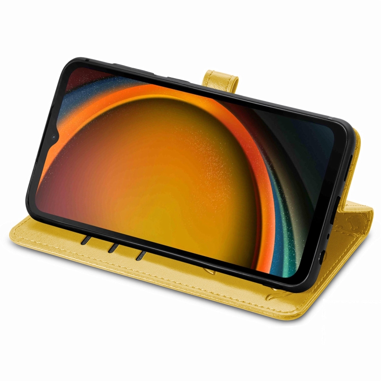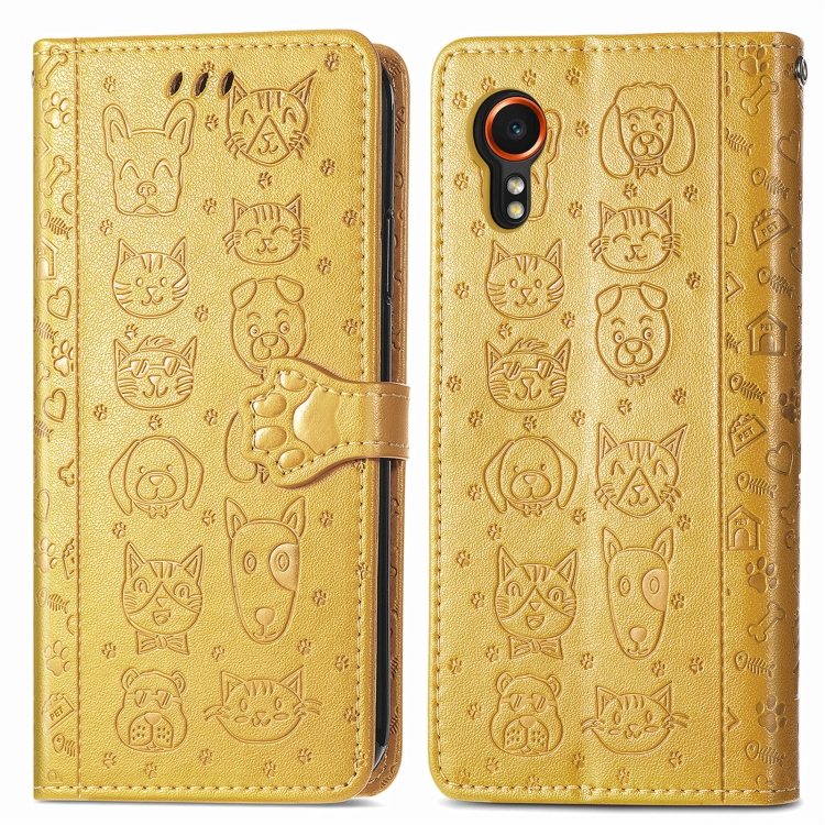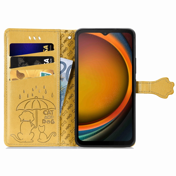 Funda para Teléfono Samsung Galaxy Xcover 7 Cuero Relieve Perro y Gato (Amarillo)
