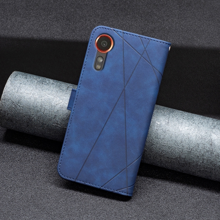 Funda para Teléfono Samsung Galaxy Xcover 7 Cuero Textura de Rombo Hebilla Magnética (Azul)