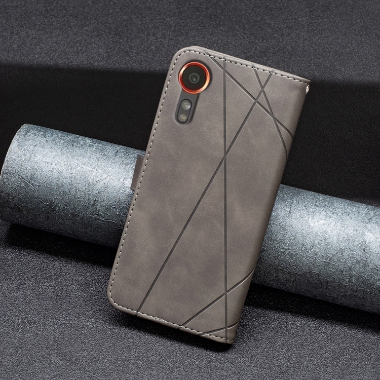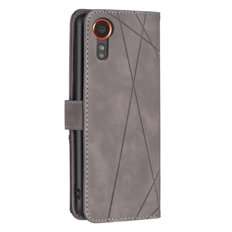 Funda para Teléfono Samsung Galaxy Xcover 7 Cuero Textura de Rombo Hebilla Magnética (Gris)