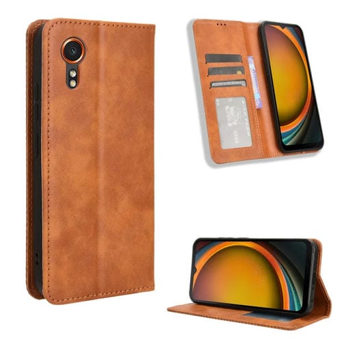 Funda para Teléfono Samsung Galaxy Xcover 7 Cuero Textura Retro Hebilla Magnética (Marrón)